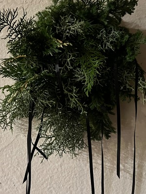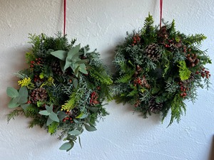 ユーカリなどを入れて香りも楽しんでもらえるリースになっています。