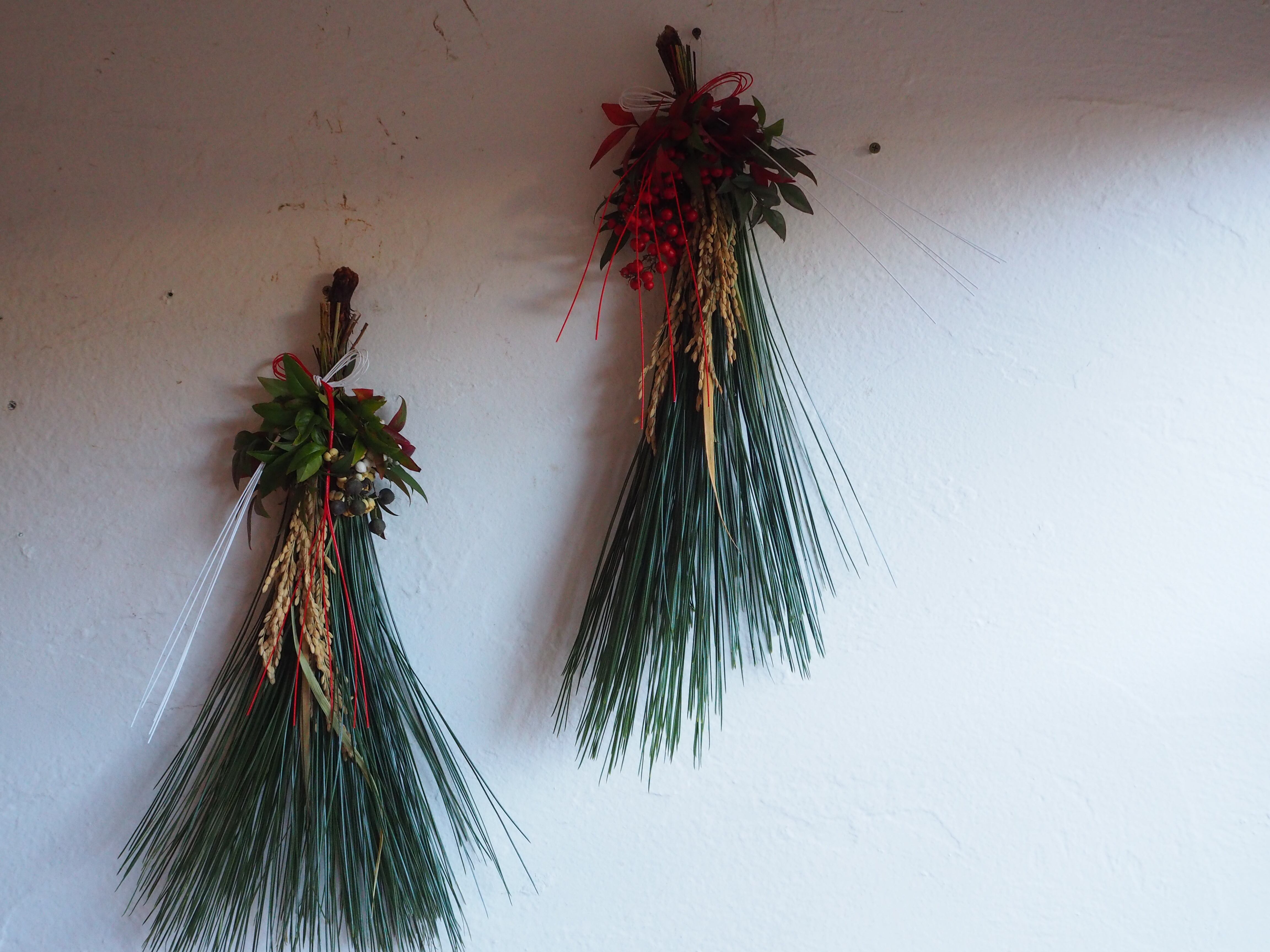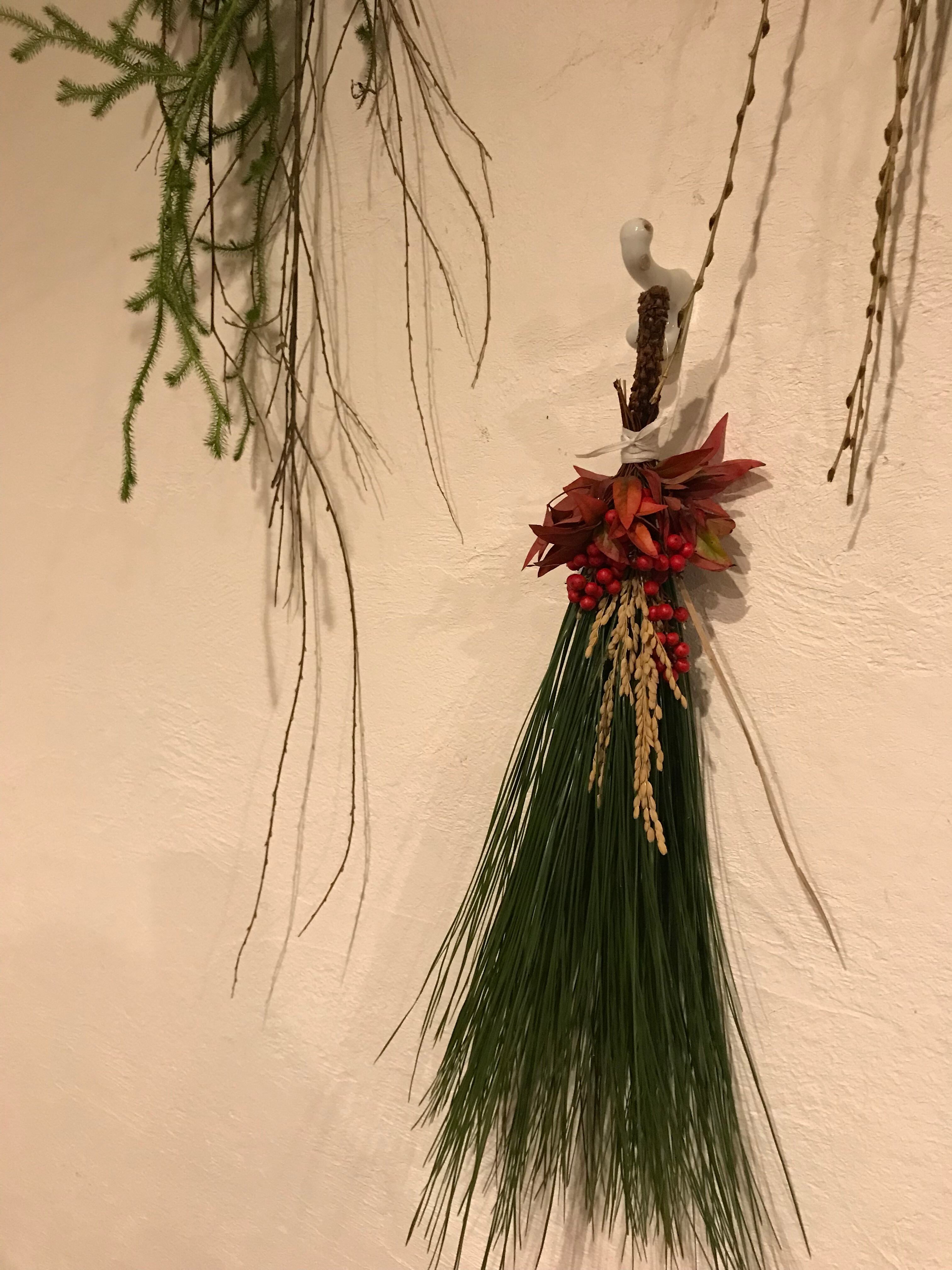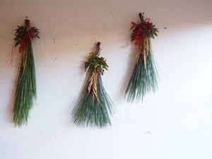 お正月に扉や壁に吊るして、飾ってもらえる苔木や松などで作っている飾りです。