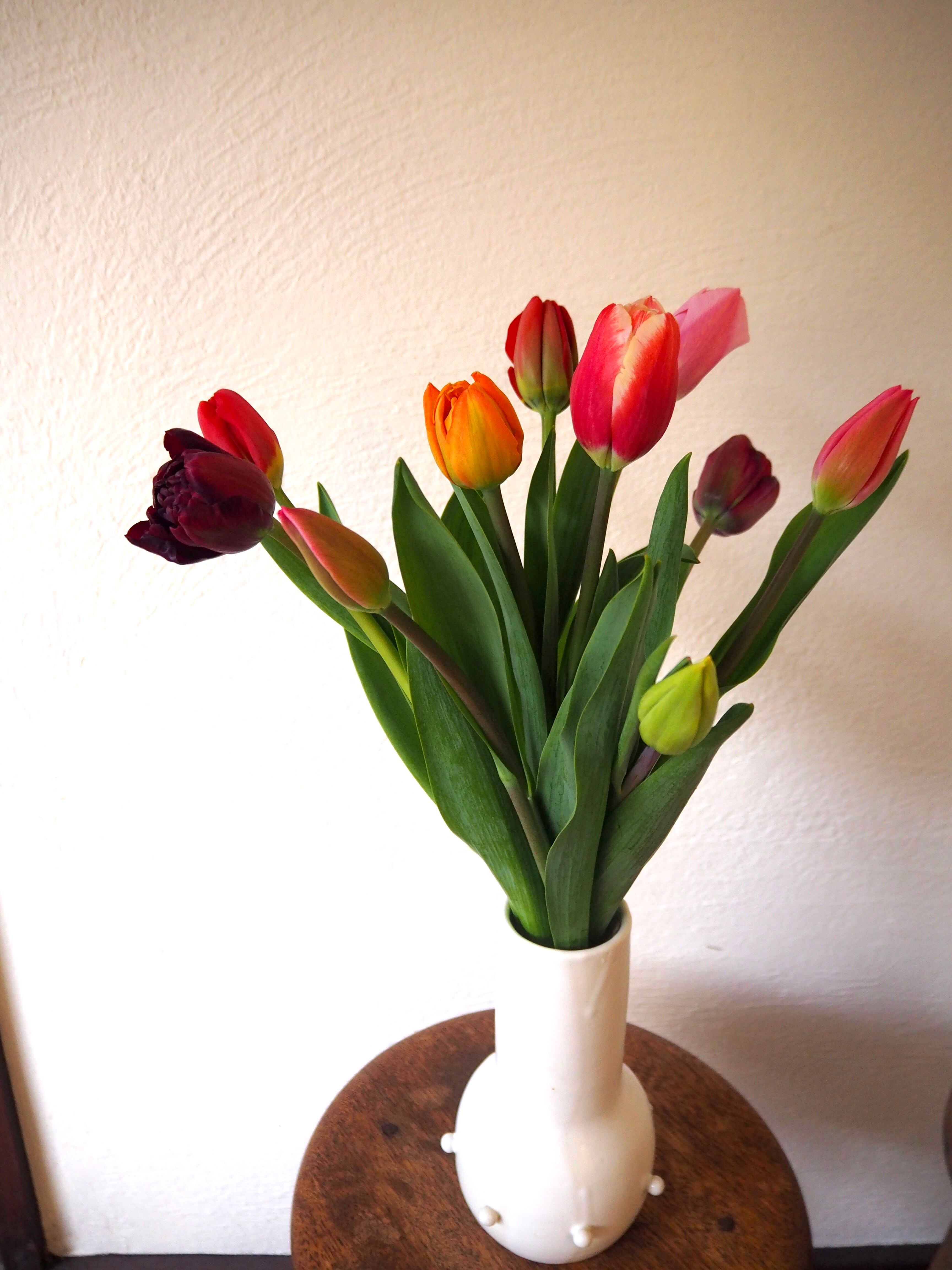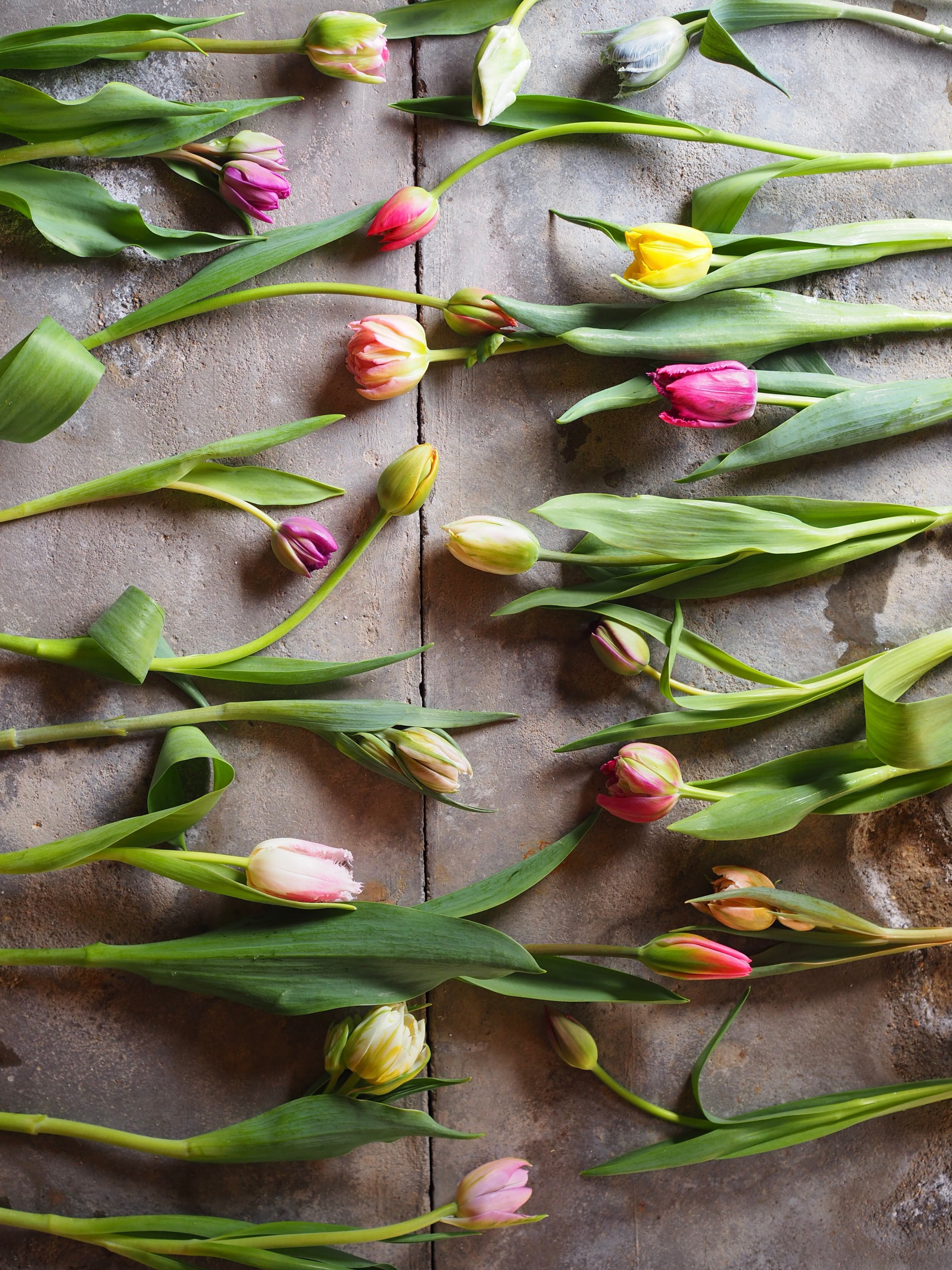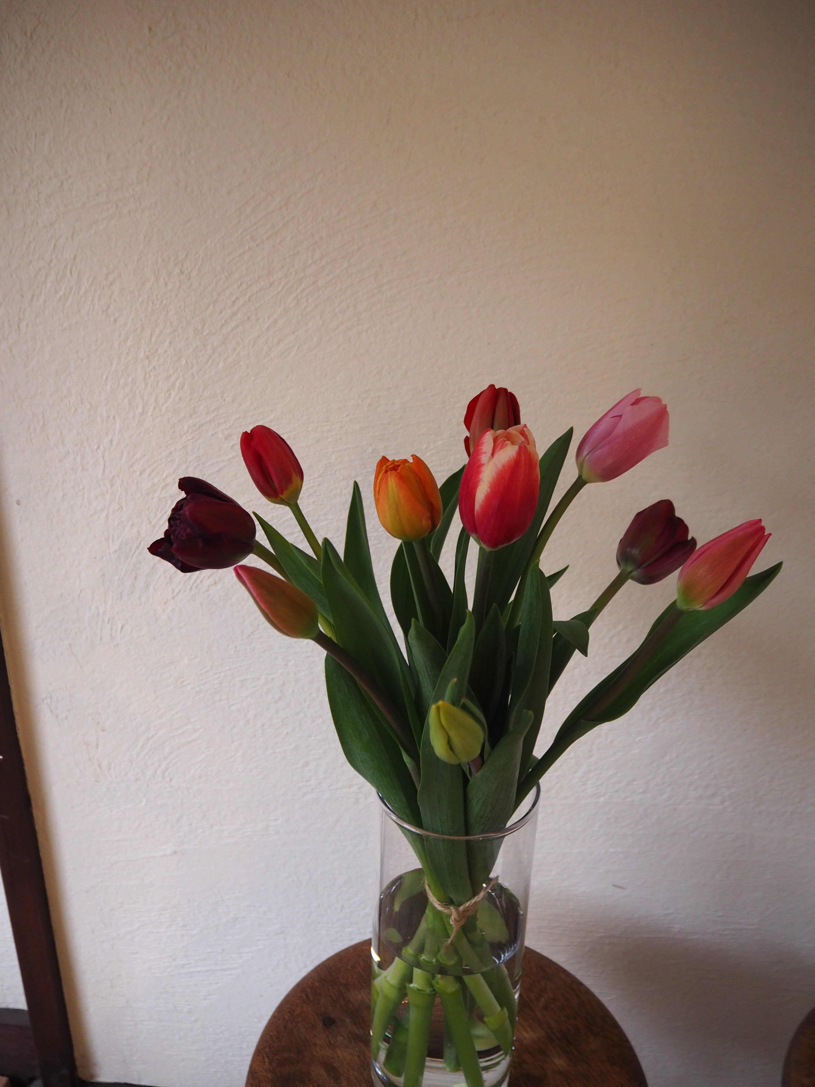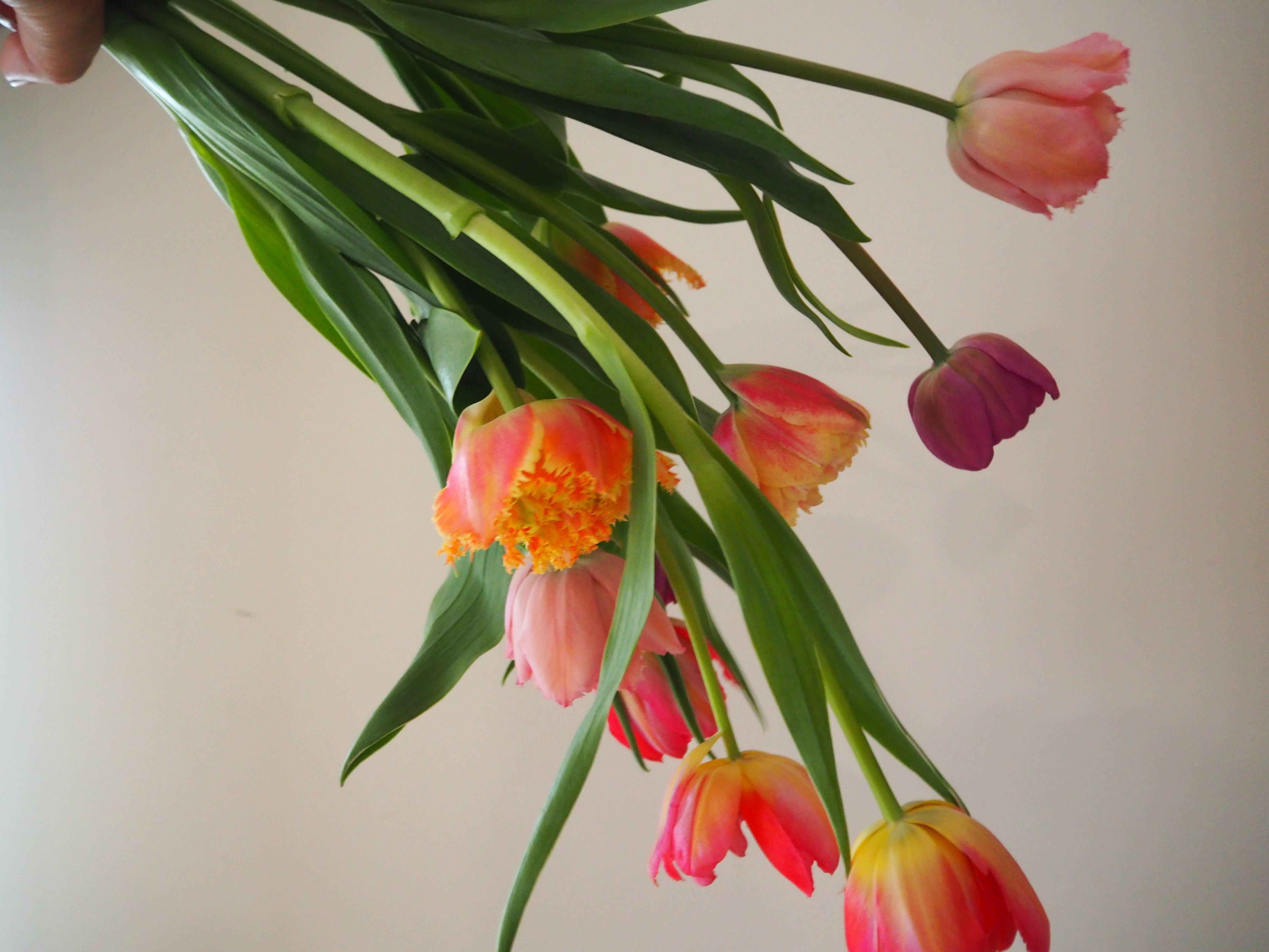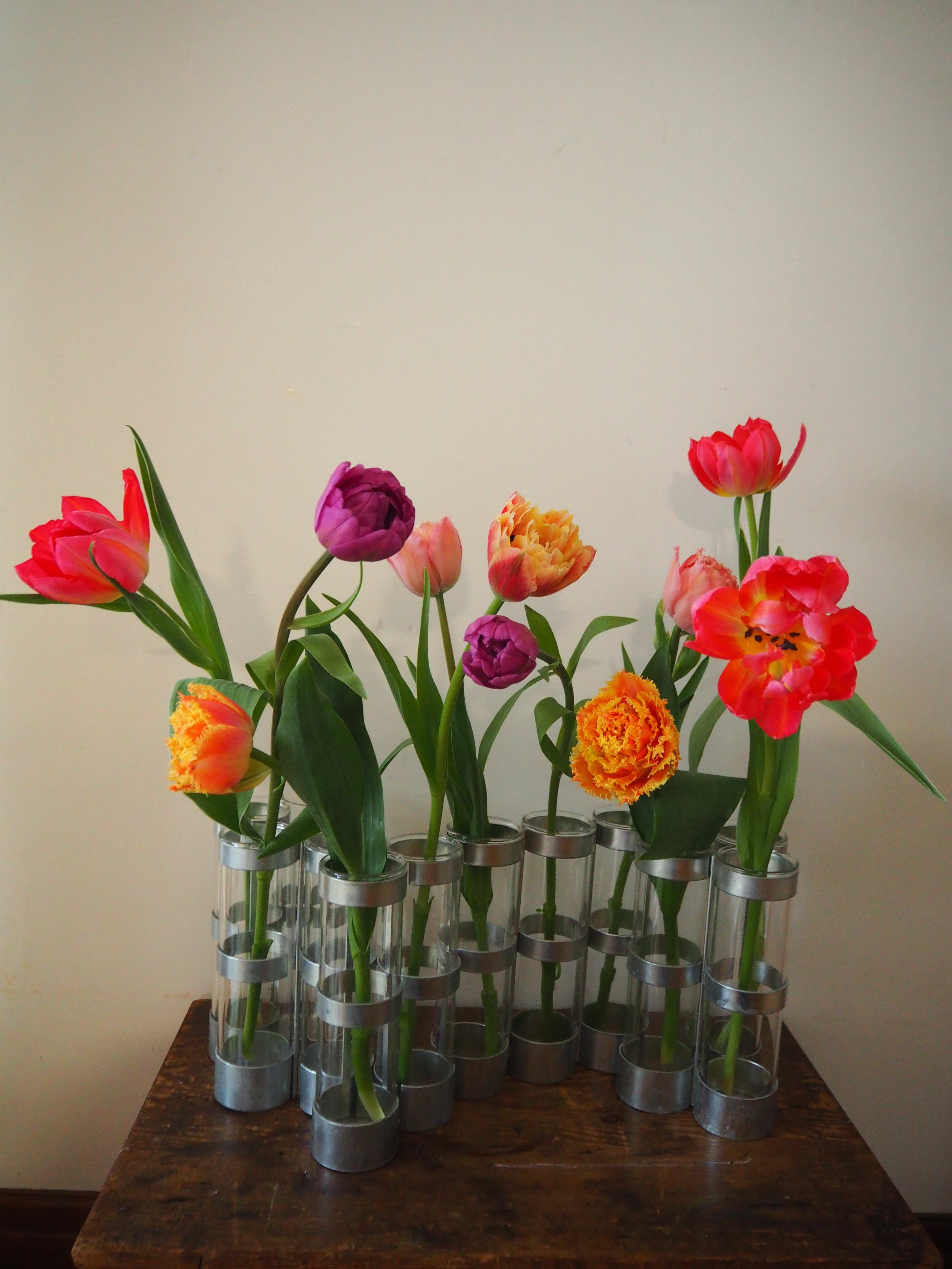 くねくね曲がったり、咲いたり閉じたり、どんどん伸びたりと自由奔放なチューリップたち。