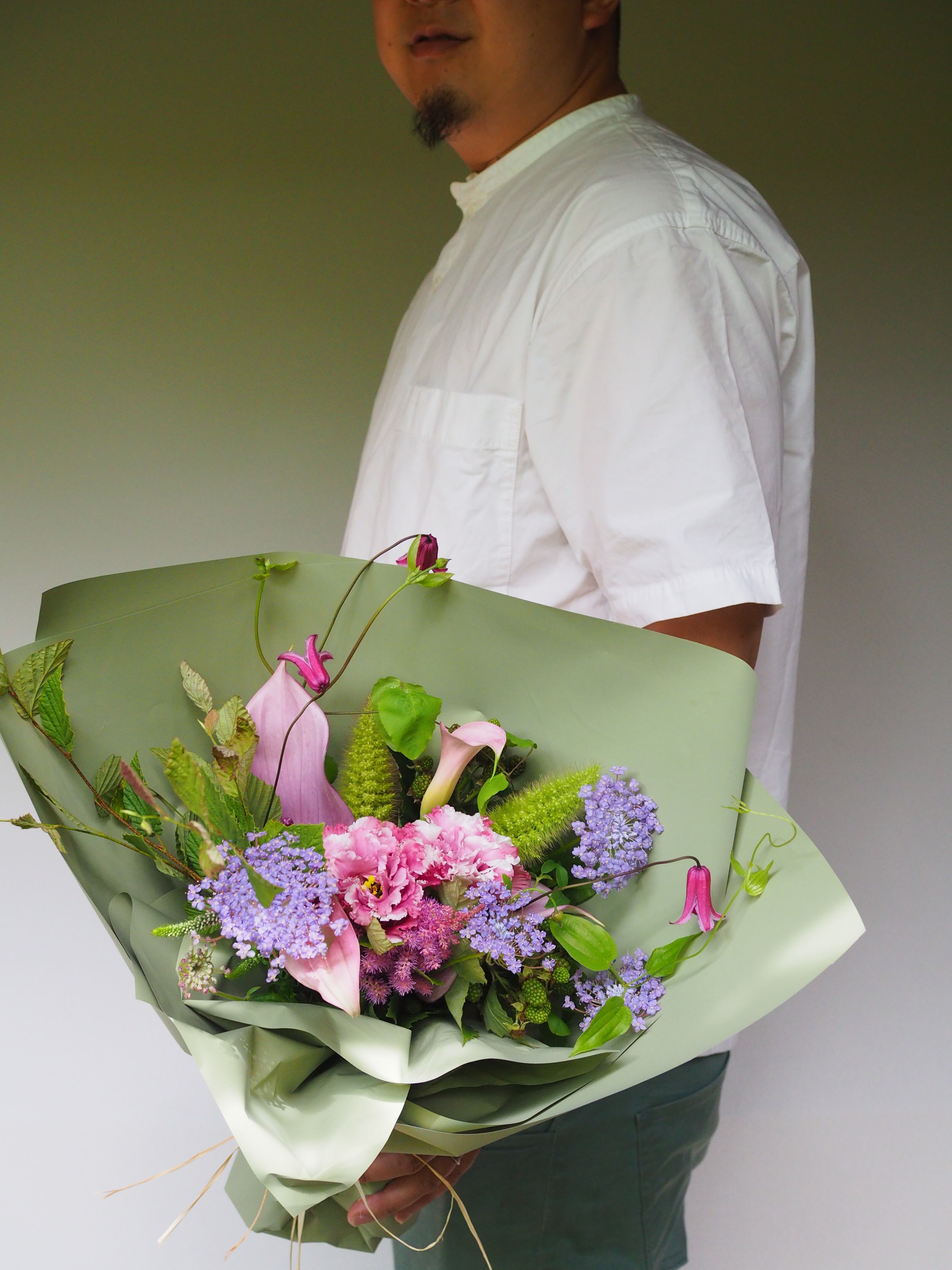 生花のおまかせ花束です。