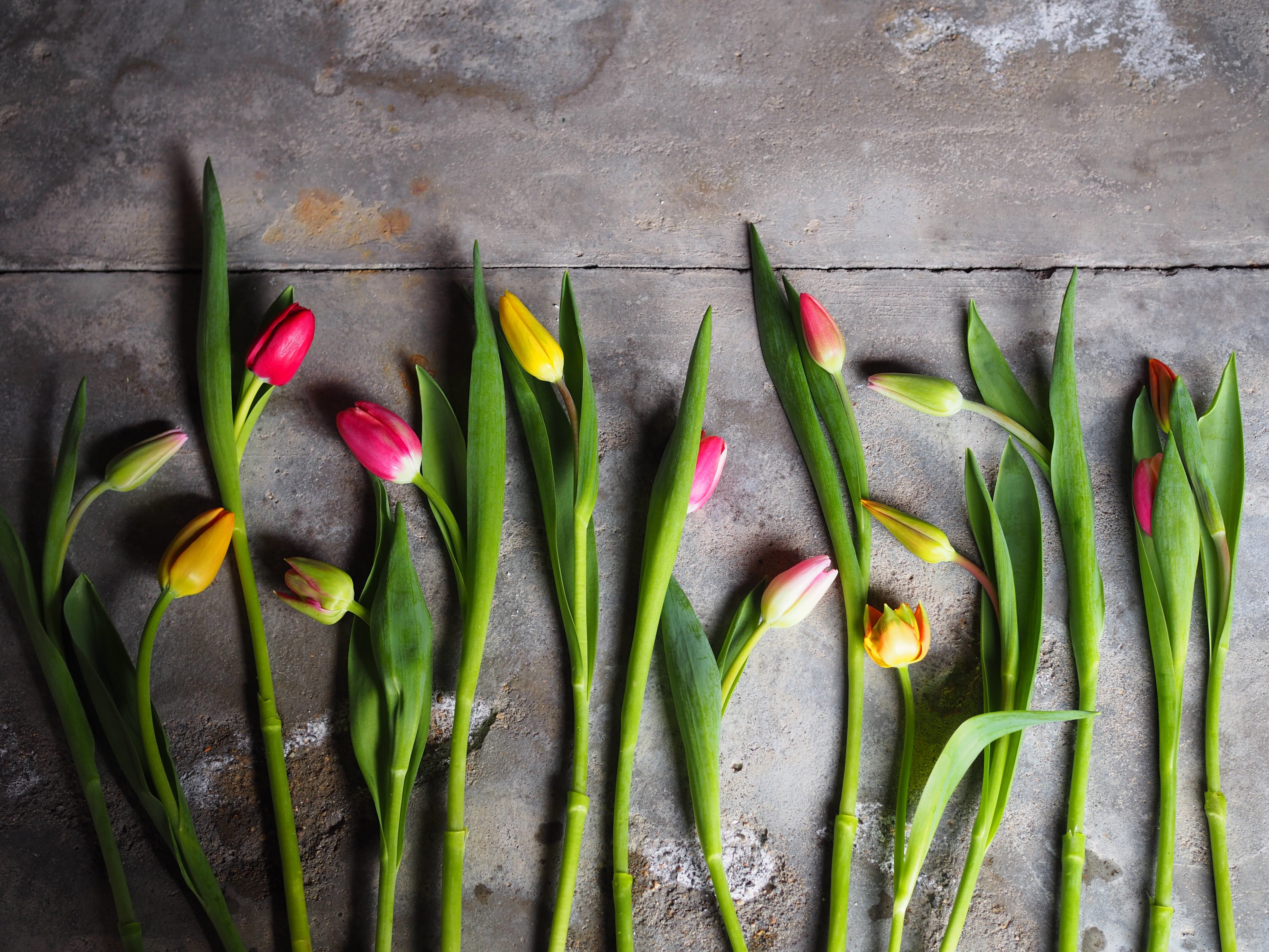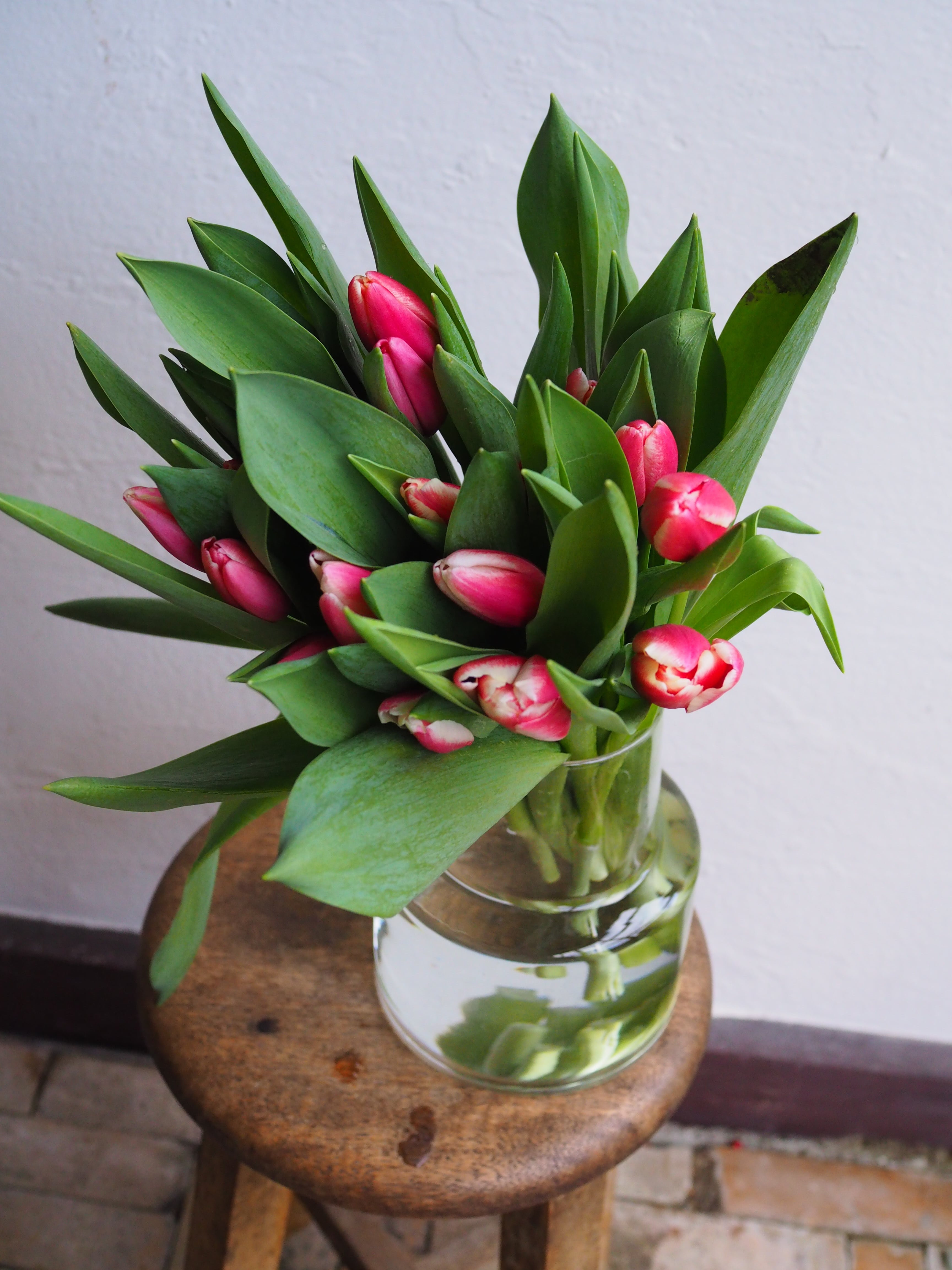 くねくね曲がったり、咲いたり閉じたり、どんどん伸びたりと自由奔放なチューリップたち。